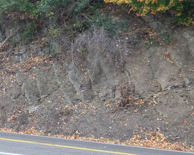 Germany Valley Overlook (behind) Along the cutouts on Route 33 are some fine fossil sites. Using a book Carol bought and the internet, they hunted for fossils.