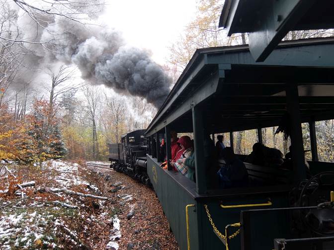To Bald Knob The train ran in to the snow line well before Bald Knob! It was very cold, but most people were prepared.