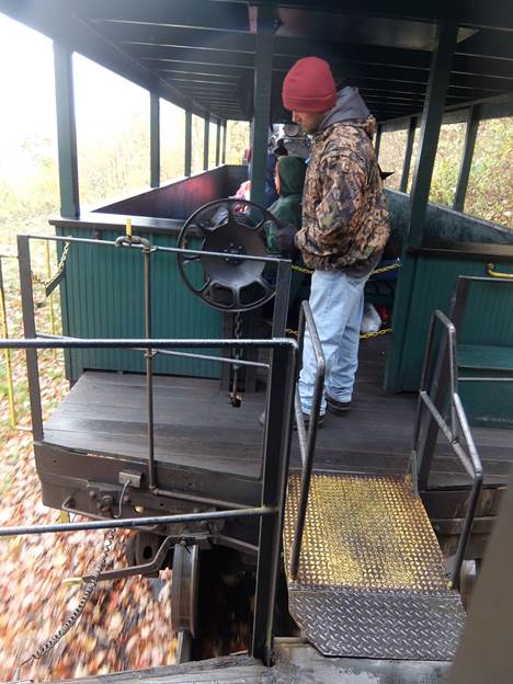 Passenger car closeup - The passenger (flatbed) cars did not have air brakes, so they had real brakeman who worked his butt off on the way down.