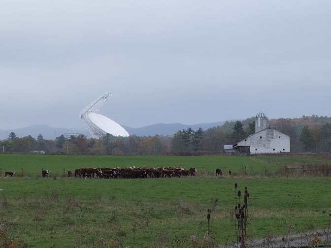 Leaving Cass WV On the road back there were cows, a barn and 100-meter radio telescope. Previews of the next day.
