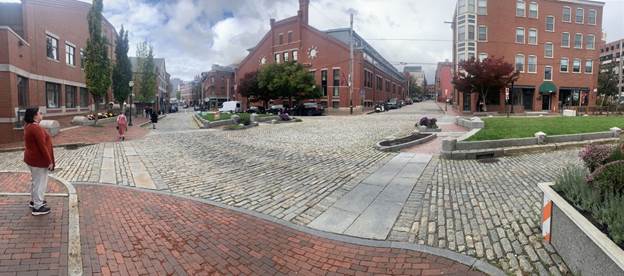 Portland Maine – Nice downtown intersection. (A panorama.) One burst of rain came through and it was nice the rest of the trip!
