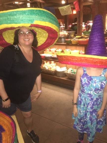 outside the restaurant San Angel Inn, Zoe finds the perfect hat.