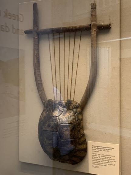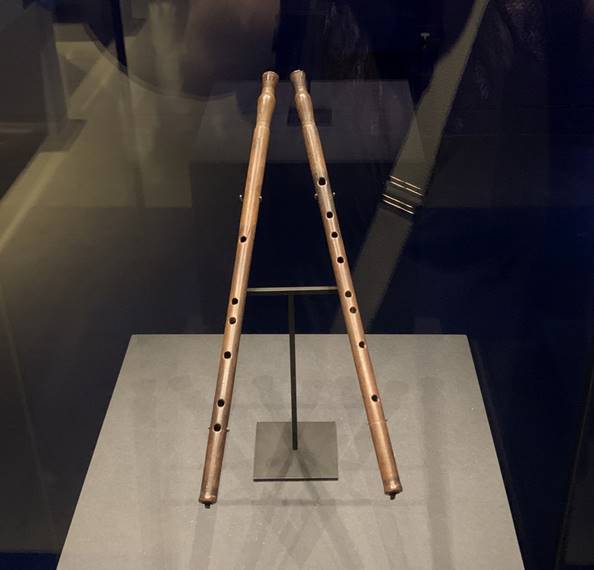 Special Exhibit. A dual flute called an ‘aulos’ from 332-395 BCE. Note the flutes have different