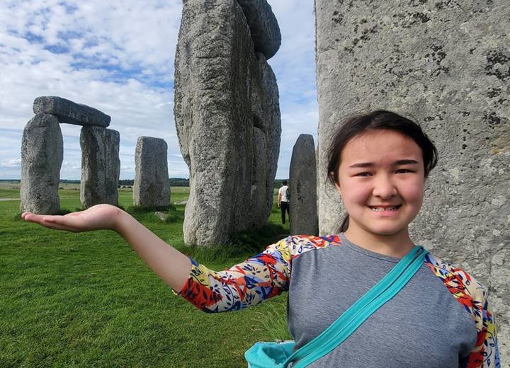 Stonehenge – Zoe showing everyone that Stonehenge is