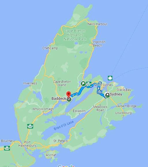 Sydney NS. Not being a town for museums or shopping, the family took a bus out to Baddeck to see what inland Cape Breton Island looked like. (50 miles or 77 km one way)