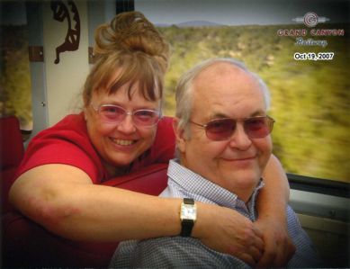 Ron and Carol on the Grand Canyon Railroad, 2007 (BTW, the paper says "Tidewater, VA." It should be "Tidewater region.")
